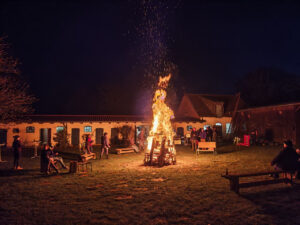 Karsamstag wurden dann nochmal alle Kräfte zusammengenommen und bis zum Sonnenuntergang gearbeitet, so dass alle Baustellen aufgeräumt und die Projekte abgeschlossen bzw. für die nächste Bauhütte vorbereitet werden konnten. Dies feierten wir dann mit einem großen und schönen gemeinsamen Osterfeuer mit BBQ und Fritten, Osterfrühstück und Osterfestmahl. Selbst das Aufräumen am Ostermontag ging gemeinsam schnell von der Hand und wir trennten uns etwas Buddel-geschafft aber zufrieden bei schönstem Sonnenschein nach einem Abschlusskreis und gemeinsamen Lied voller Vorfreude auf die nächste Bauhütte Ende April.