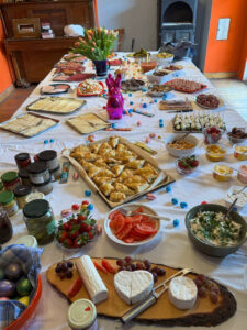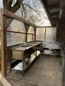 Viele Projekte, das heißt auch immer viel Material, welches benötigt und dann natürlich mühsam besorgt und herangeschafft werden musste. Zudem machten Wind und Schiet-Wetter es nicht immer ganz einfach. Die nächste Pause mit Sterneköch*innen-Verpflegung war jedoch immer nur einen Wimpernschlag entfernt und entschädigte für alles. Dafür sorgten die fleißigen Küchen-Hasen, die an allen neun kompletten Tagen viermal täglich immer ziemlich rechtzeitig und vor allem immer unglaublich lecker eine Mahlzeit gezaubert haben – und JEDES MAL danach waren zeitnah richtig tolle Abwäscher*innen und Helferlein in der Küche.