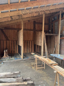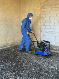Nach einem ersten netten Hofabend in kleiner Runde, machten wir und am nächsten Morgen direkt an die Arbeit. Motiviert durch das, von den Wandergesellen bereits fast abgeschlossene Teilprojekt, „Holzstallertüchtigung“, wagten wir uns an das Großprojekt dieser Osterbauhütte, der Backstubensanierung – auf das diese bald im neuen Glanz erstrahlt. Es ging also ans schaufeln, buddeln und Schubkarren fahren. Dadurch wurde die entkernte Backstube und die zukünftigen Spülküche für Zu- und Abwasserinstallation sowie den neuen Fußbodenaufbau vorbereitet. Die Buddelei und Schaufelei sollte uns dann auch die gesamte Bauhütte begleiten.